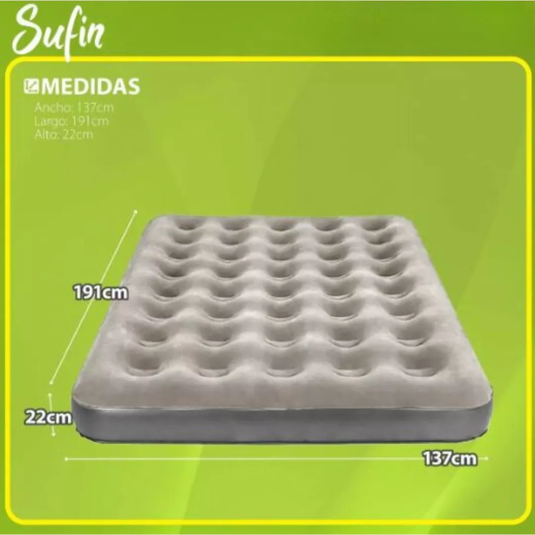 .Medida: 137 cm x 191 cm x 22 cm (inflado).