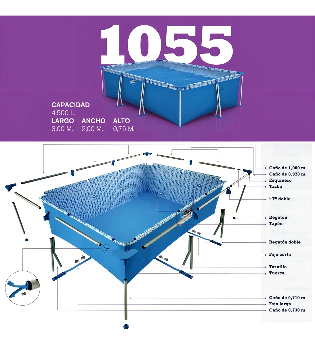 Pelopincho es una reconocida marca Argentina que, desde hace más de 70 años, ofrece productos creativos y adaptados a los consumidores. ¡Todos al agua! Con esta pileta, vas a pasar las mejores tardes de verano: frescas y divertidas. Para todo tipo de espacios Por su forma rectangular y su tamaño amplio y cómodo de 3 m de largo y 2 m de ancho, los meses de calor serán tus preferidos del año para compartir momentos únicos junto a quienes más querés. Comodidad y cuidado Con su válvula de desagüe, vas a poder sacar el agua de una manera mucho más rápida y simple cuando desees limpiarla o vaciarla.