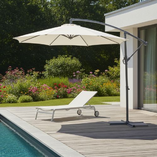 Obtené sombra completa y estilo moderno con esta sombrilla tipo banana de 3 metros de diámetro. Su diseño colgante con rotación de 360° te permite ajustar fácilmente la orientación para seguir el sol durante todo el día. Ideal para jardines, patios y espacios de relax al aire libre. Una opción elegante, funcional y versátil para disfrutar de tus espacios exteriores con el máximo confort.